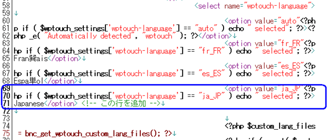 - プラグインにあるgeneral-settings-area.phpファイルの以下の青い部分を日本語化ファイルの指示に従って追加する。